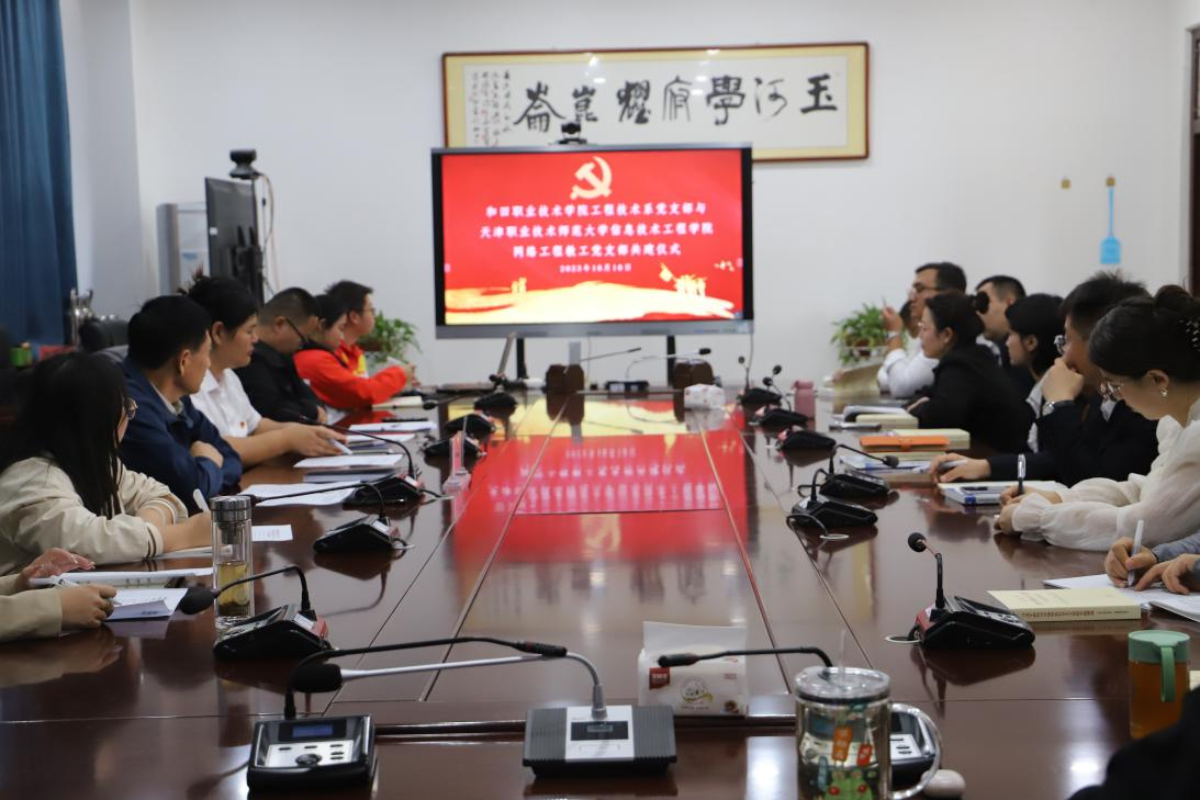 津和一家亲 党建引领谋新篇--网络工程教工党支部与和田职业技术学院工程技术系党支部开展共建活动为深入推动学习贯彻习近平新时代中国特色社会主义思想主题教育走深走实,落实习近平总书记关于党的建设重要思想,按照“专业特色相似、办学方向相近”的原则,以加强学院基层党组织和党员队伍建设为重点,实现以共建深化创新、以党建推动发展,促进学院统筹协调发展,2023年10月10日,爱一帆 联合和...