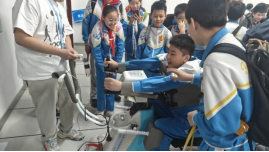 而在智慧康养体验区,学生们则观摩了铸造工艺全流程,理解传统工艺与现代技术的融合。此外,他们还通过智能床垫、健康监测手环、助行机器人等设备的互动体验,直观感受到了科技对养老生活的改善。在“模拟养老护理”游戏中,学生们更是培养了关爱老人的社会责任感。