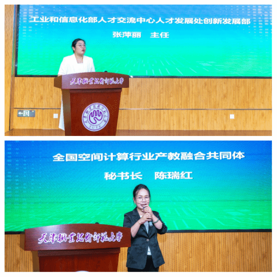 随后,工业和信息化部人才交流中心人才发展处创新发展部张萍丽主任发表讲话,对当前信创产业的发展趋势进行了深入剖析,并对高校在信创人才培养方面的挑战与机遇提出了独到见解。全国空间计算行业产教融合共同体秘书长陈瑞红围绕产教融合的主题,分享了共同体在推动信创产业与高校合作方面的经验和成果。