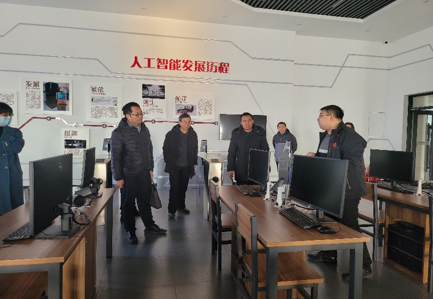 首站,石院长一行来到天津电子信息职业技术学院,实地考察了计算机与软件技术系技能训练中心、人工智能实验室及零壹工坊等实训场所。作为用人单位的调研对象,计算机与软件技术系主任杨阳详细介绍了其系部的建设情况、教研室概况以及当前的专业人才需求。双方就人才培养、培养方案设置及特色课程建设等关键议题进行了深入探讨,为学院相关专业的发展和人才培养策略提供了宝贵的借鉴。