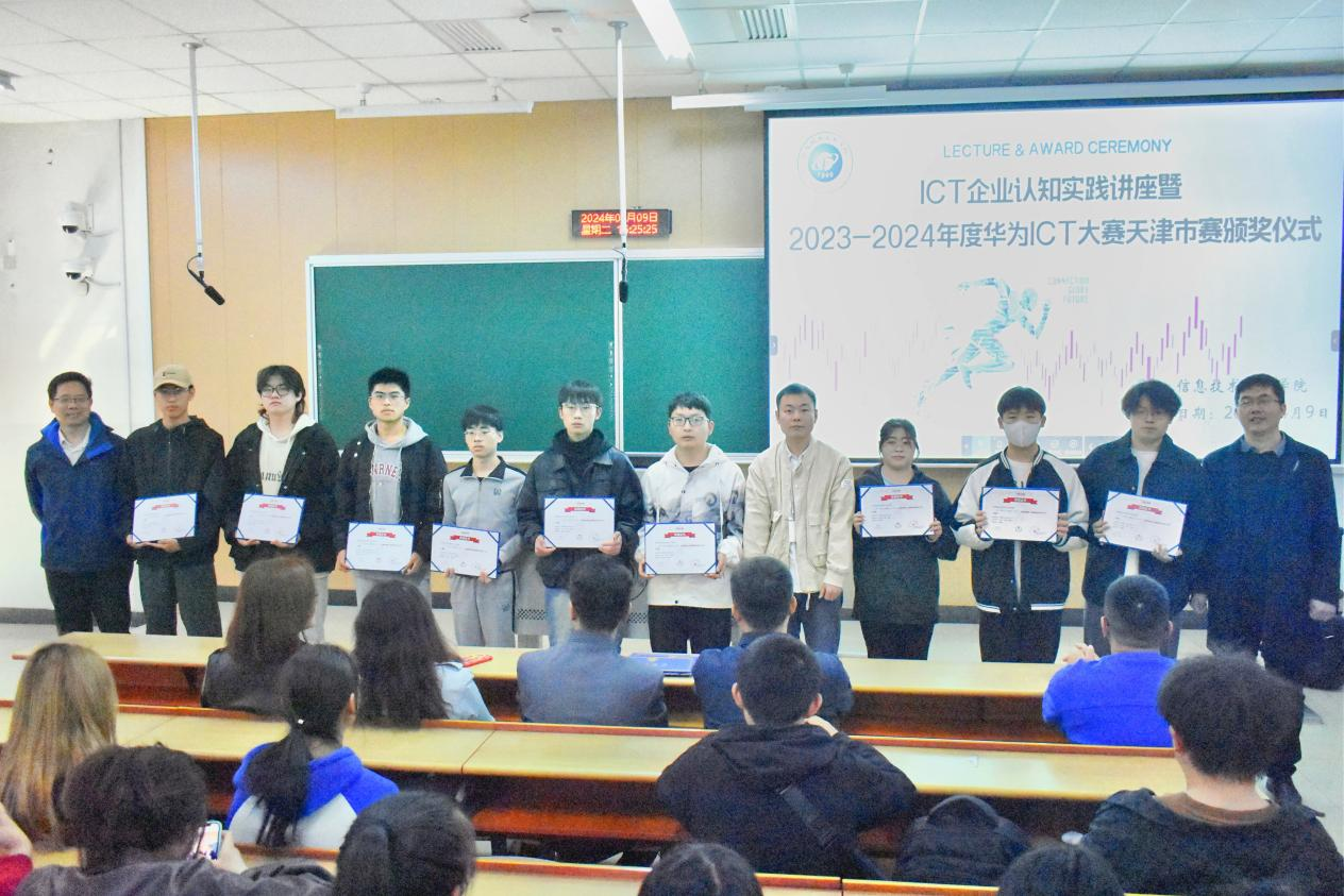 举办了ICT企业认知实践讲座暨2023-2024年度华为ICT大赛天津市赛颁奖仪式。本次活动旨在搭建一个交流学习的平台,为学生提供一个感知ICT企业岗位的机会,助力学生自我成长和职业生涯的规划发展。