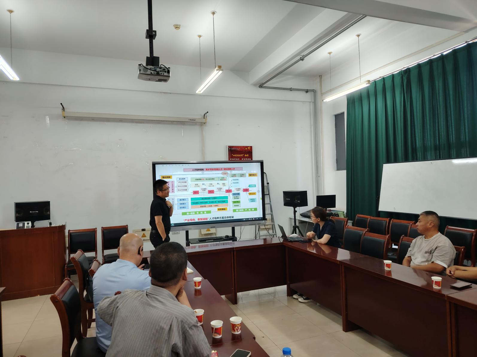 副院长余秋冬教授及数字媒体系、教育技术系的相关老师热情接待了廖国琼院长一行。会议伊始,余院长代表学院对廖国琼院长一行的到来表示热烈欢迎,并简要介绍了学院在产教融合、科研创新及社会服务等方面取得的成果与经验。