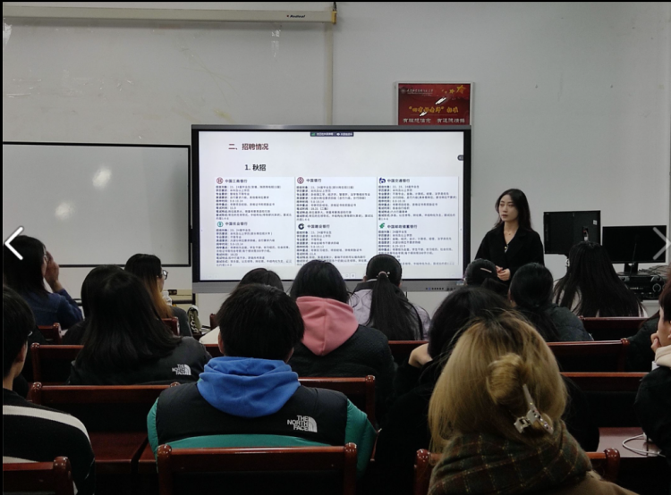 孙秀一对银行岗位进行就业分析;她介绍了各大银行在不同招聘期,如春招、秋招的招聘情况以及招聘要求,并详细介绍了招聘流程;分享了自己在备考期间总结出来的面试和笔试经验。此外,她还结合自身对就业市场的观察,介绍了本专业就业市场行情,并在方向选择、就业心态上给出了自己的建议。
