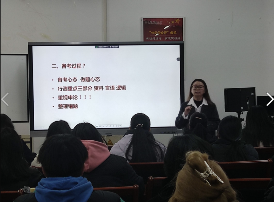 李佳炫讲述了在考公过程中如何选择自己的岗位,指出计算机大类专业在就业市场中有着很大的竞争优势;她结合自身经验,为大家提供了有针对性的备考建议,包括备考方向、学习方法等,让同学们对公务员考试增加了信心。