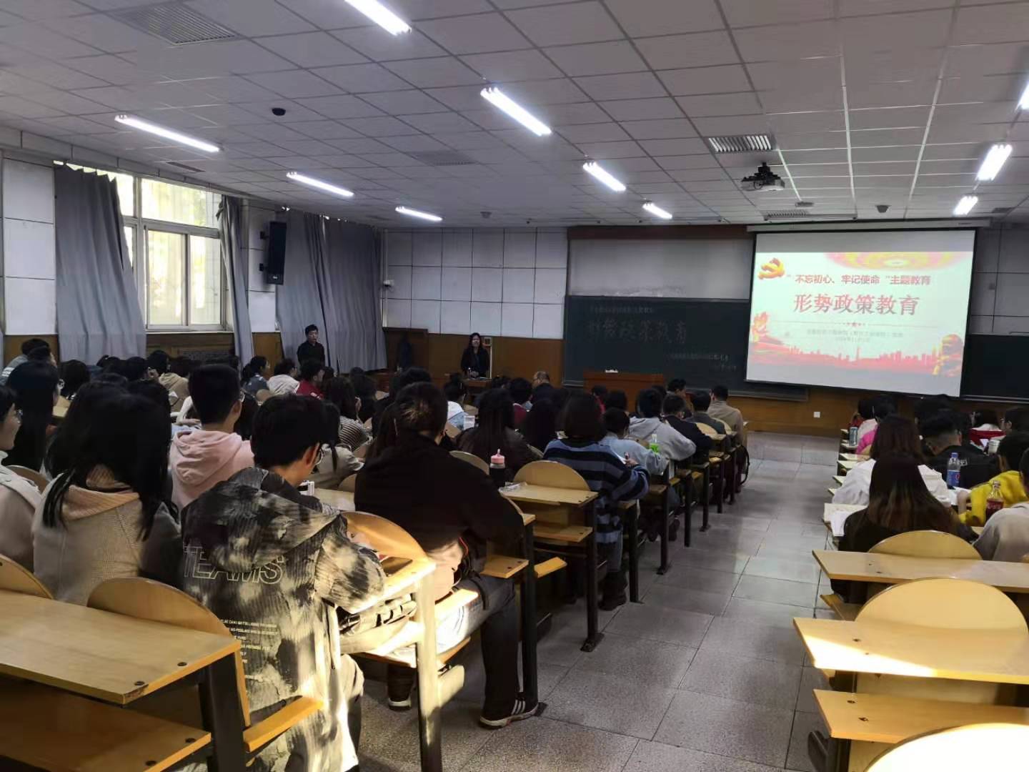 邀请校社科部孟凡长老师为全院师生党员进行形势政策教育专题讲座。全院100余名师生党员聆听了报告。