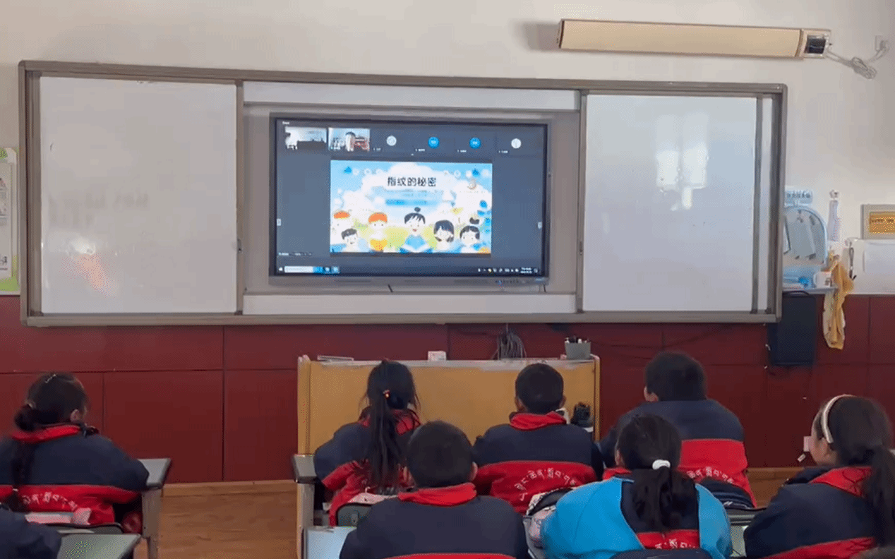 《指纹的秘密》在课堂开始之前,实践团陆国豪亲切提出课程引言“同学们在日常生活中有没有留意过我们的指纹,仔细观察,我们观察到什么?”同学们积极回答后顺势展开课程,介绍今天的课程内容,进一步导入课程主题,激发同学们对指纹探索的兴趣。
