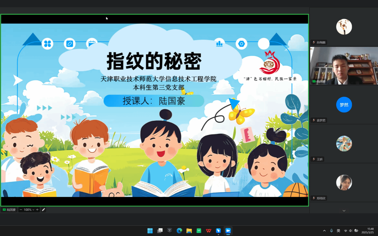 本科生第三党支部成员陆国豪和王妍同志为西藏丁青县实验小学的同学开展了“指纹的秘密”和“家书抵万金”为主题的石榴籽小课堂。