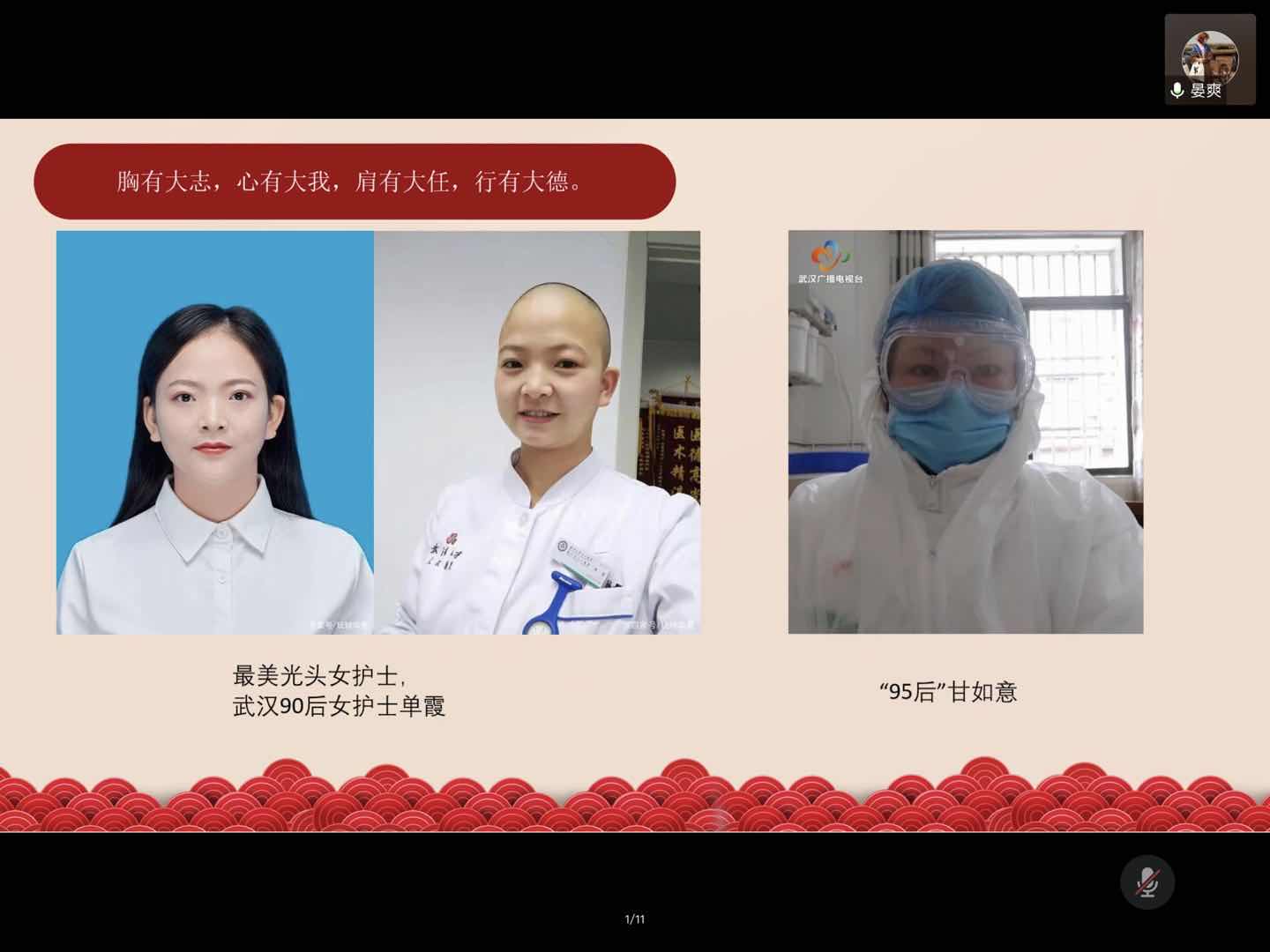 会上,支部成员都基于自身实践和感受分享了身边的抗疫故事,分享切身体会。支部书记晏爽表示毕业生党员发挥党员先锋模范作用,义务帮同学邮寄电脑、图书,帮助未在校党员、积极分子整理材料,希望这份宝贵的精神在支部内传承下去。最后,呼吁大家做一个有理想、有本领、有担当的人,用青春书写战“疫”担当,用实际行动助力疫情防控的人民战疫取得最终胜利。